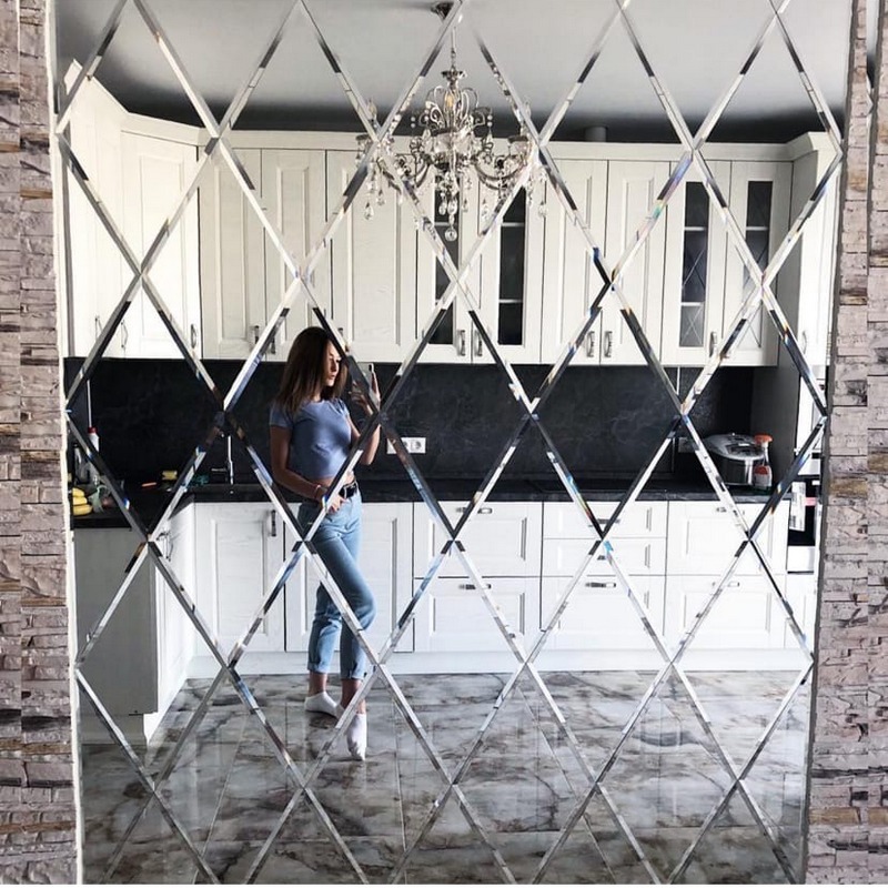 Использована серебряная квадратная зеркальная плитка.